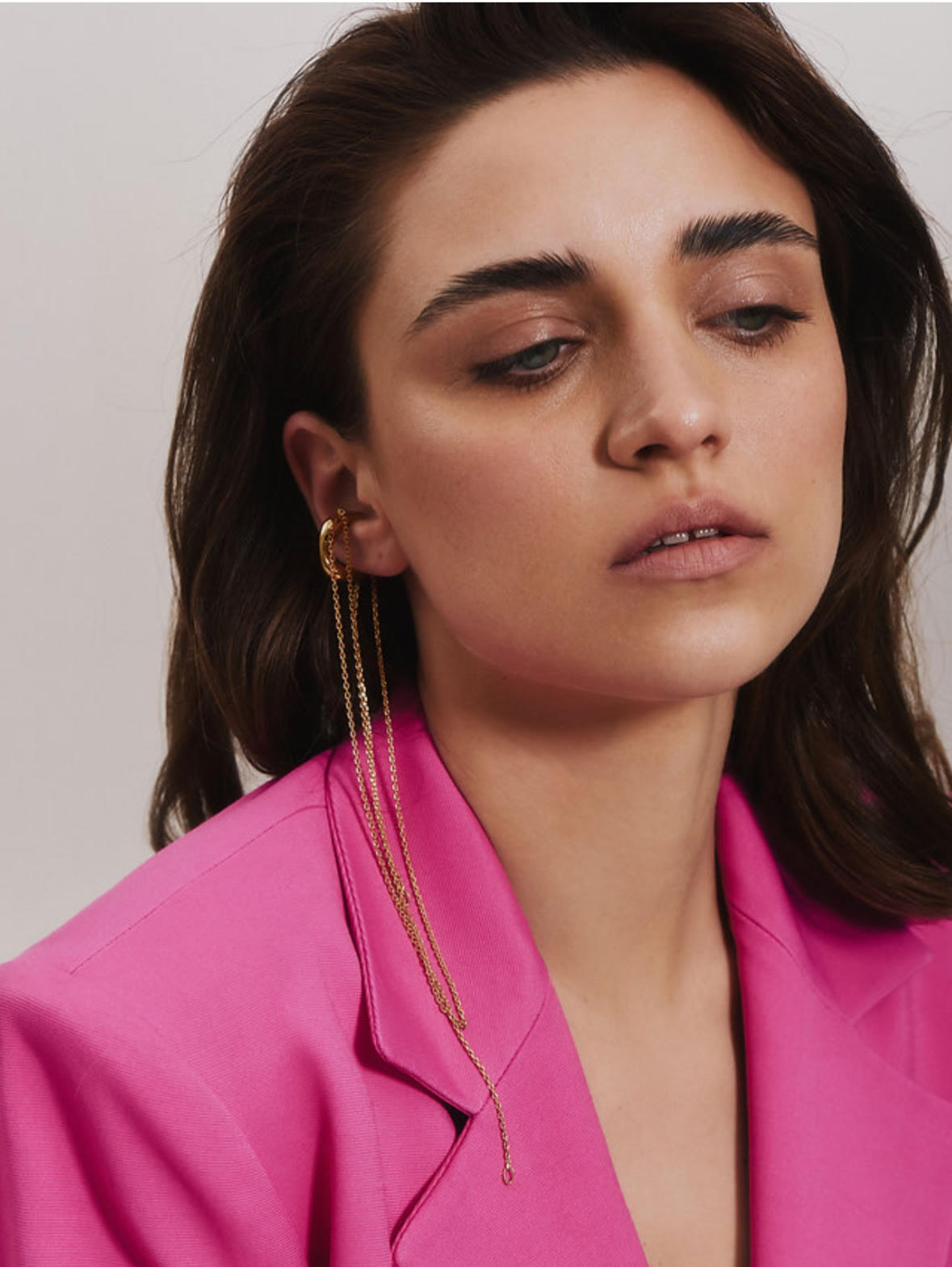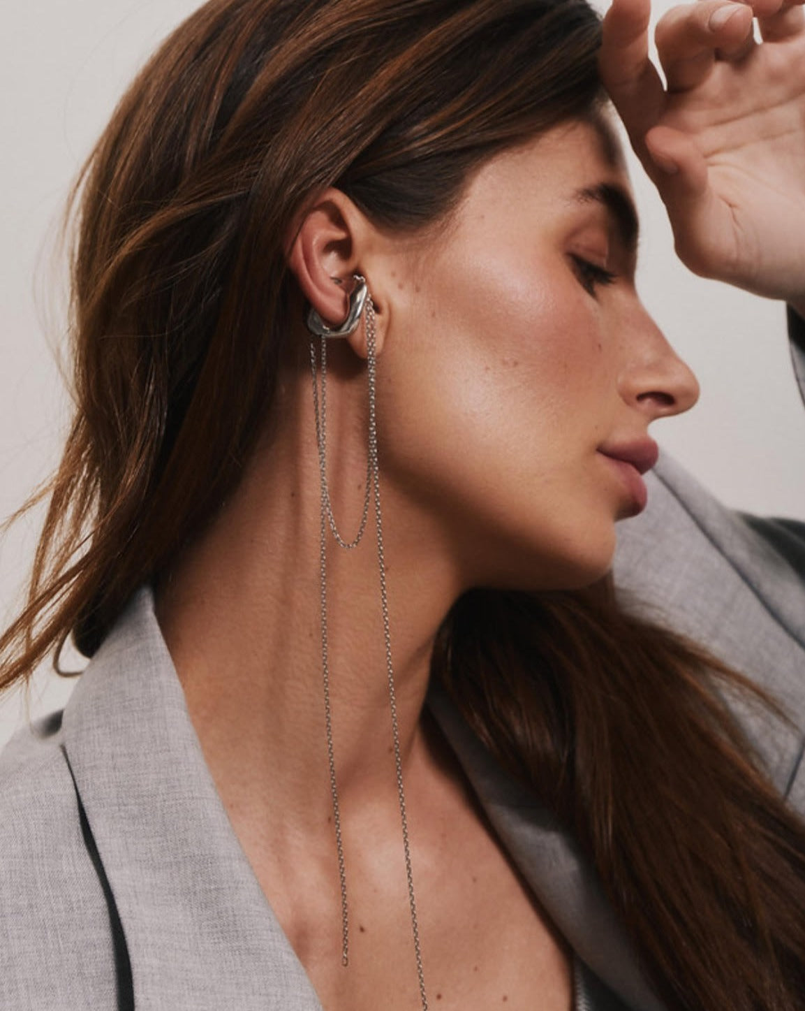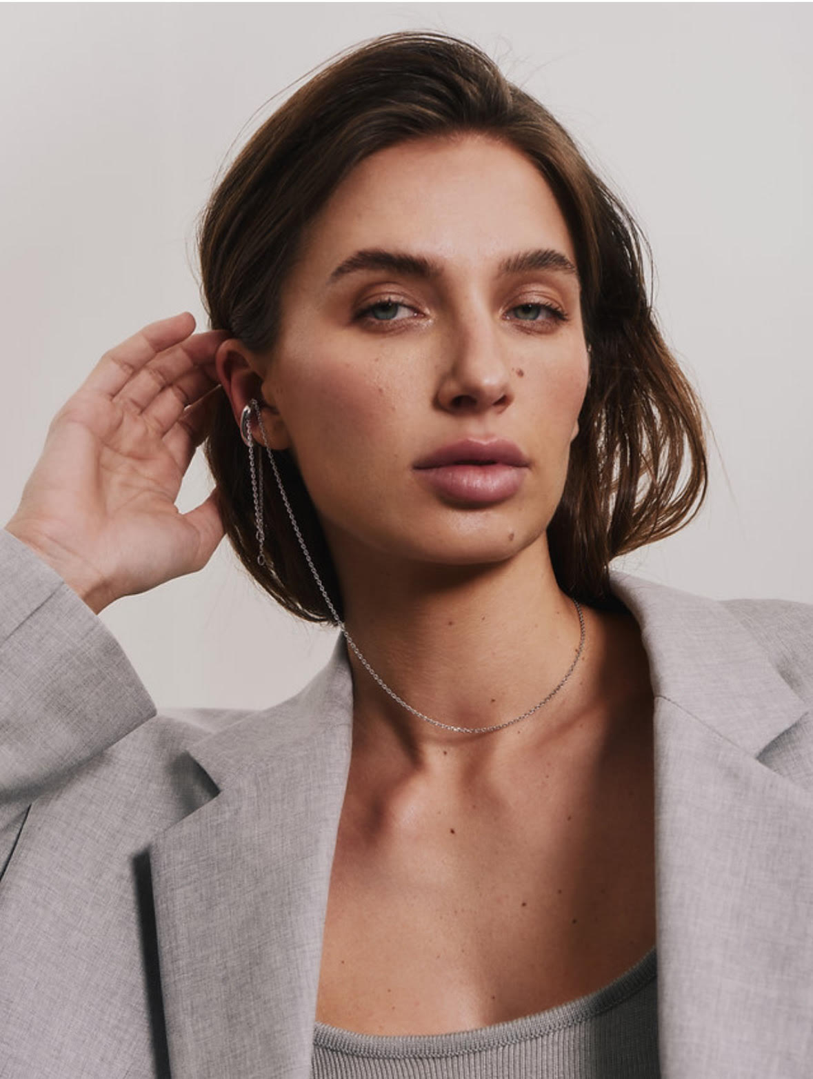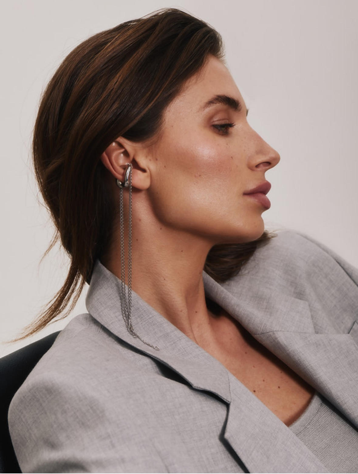The Entero Transforming Cuff-Necklace offers versatile styling with its movable link slider. To wear it as a cuff, insert it through the thinnest part of the helix at the top of your ear and lower it to the conch. Here are 7 ways to wear it: